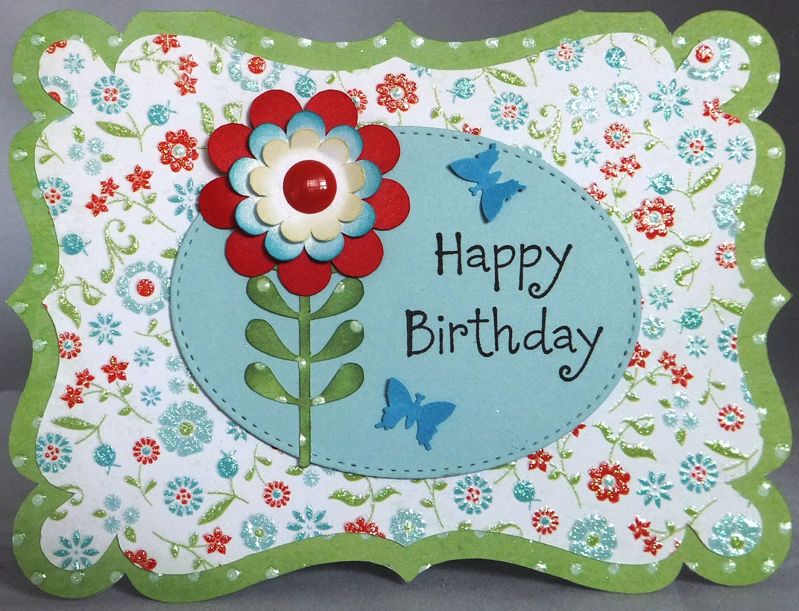 Such a fun and cheerful card Cheryl! Looks like Spring has sprung in your neck of the woods :) Love the layered flower and cute little butterflies!