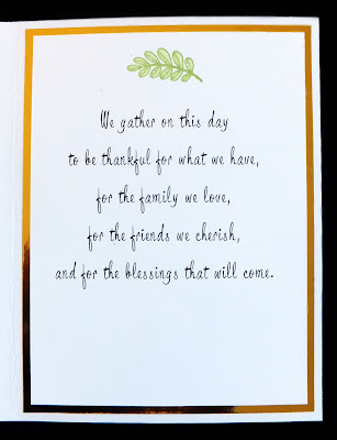 My computer-generated sentiment on the inside was matted with the gold cardstock. I also added a stamped frond, using one of the stamps that had also been used on my card front.