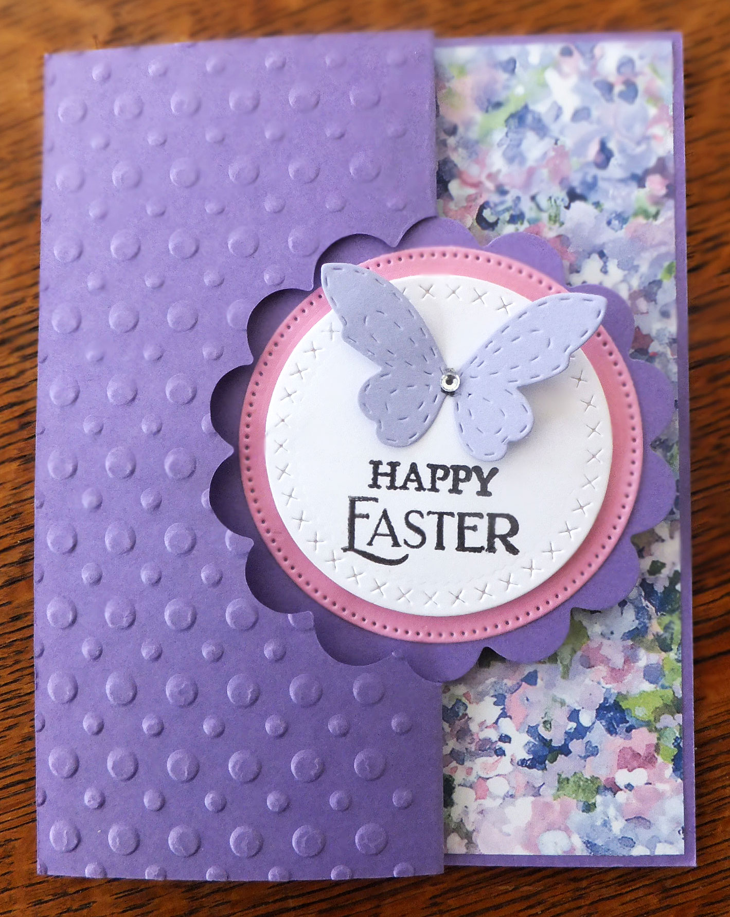 All I did to complete the cards was dry-emboss the front panel, add some circles and butterflies to the scalloped section, and then finish the inside.