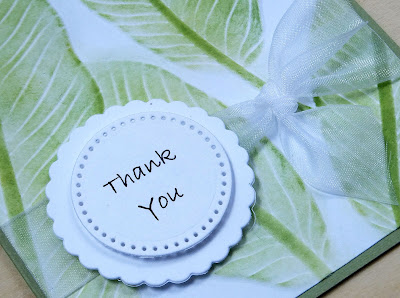 When I was at my friend Lynette's home for a crafty play day, she let me use one of her 3D embossing folders that featured BIG leaves. After I had embossed my panel and taken it home, I wasn't sure what to do with it. The panel looked a little plain in all white, so I decided to add some color.