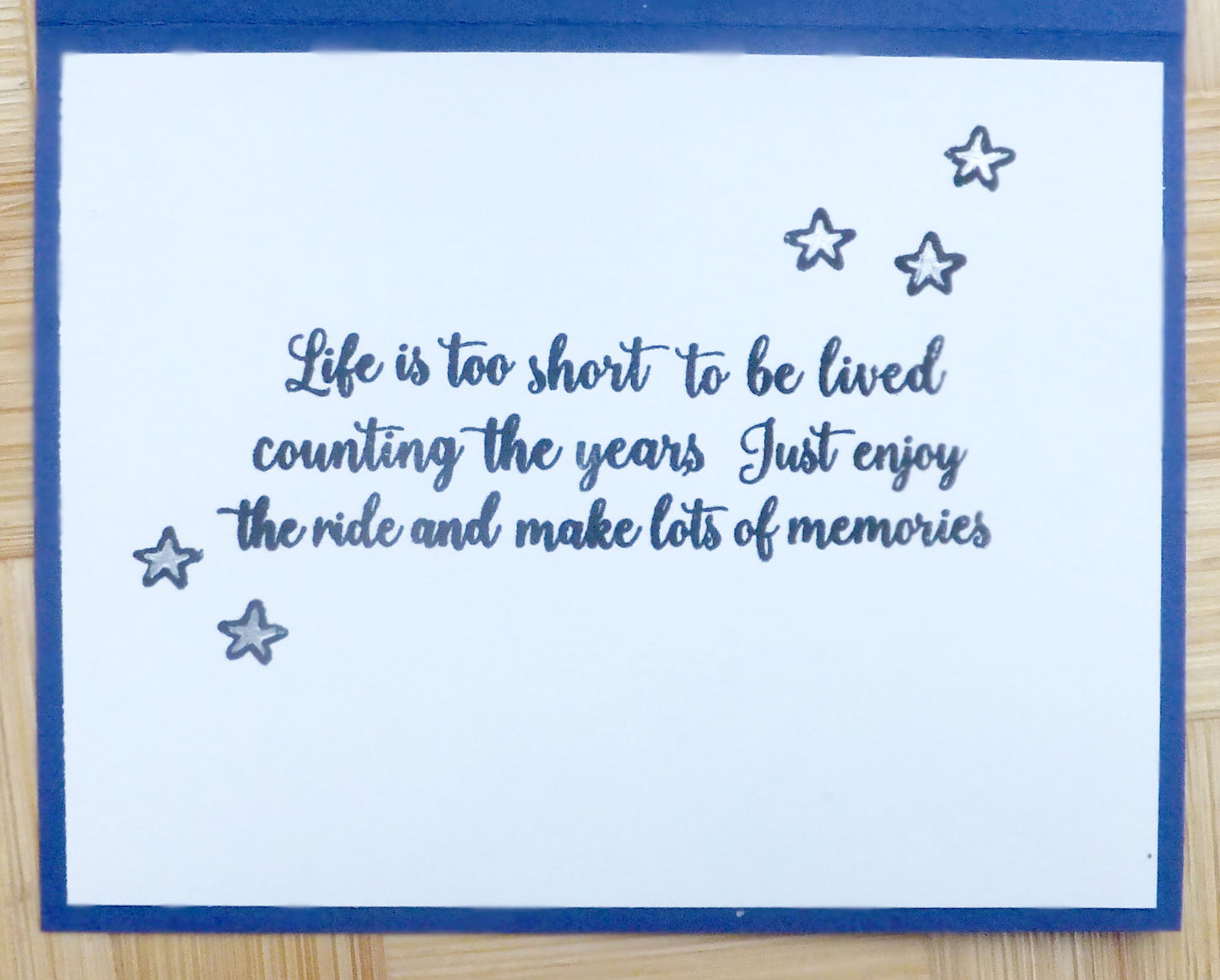 The inside of this card had a stamped sentiment and a few stamped stars that I filled in with a glitter pen.