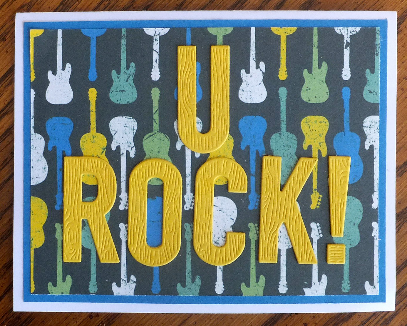 I had a small piece of this guitar-patterned cardstock left in my stash, and I wanted to use it. It is years old, possibly as many as eight!